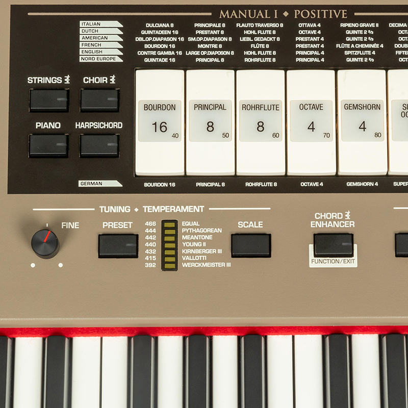 采用Dexibell专业T2L音色建模技术,高度还原欧洲教堂管风琴的声场与共鸣,音色饱满无电子生硬感。依托无限复音与320振荡器,复杂演奏无掉音、无动态压缩;同时还原Manual I/II与Pedal三分区结构及独立音栓控制,贴合真实管风琴演奏逻辑,专业且易操作,适配圣乐、古典演奏等多种场景,营造沉浸式氛围。